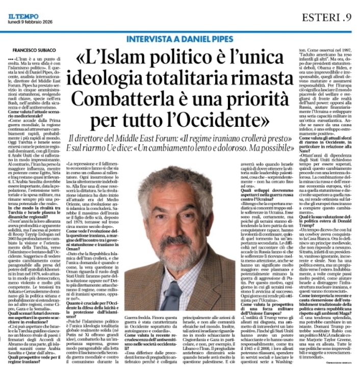 «L'Iran è a un punto di svolta. Ma la vera sfida è con l'islamismo politico». È questa la tesi di Daniel Pipes, docente, analista internazionale, direttore del Middle East Forum. Pipes ha prestato servizio in cinque amministrazioni statunitensi, svolgendo ruoli chiave, specie nell'era Bush, nell'ambito della sicurezza e dell'antiterrorismo.